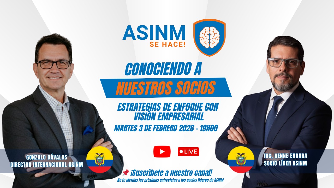 ASINM es una organización a nivel Iberoamericano, que gestiona y administra procesos de Neuro Ciencias aplicada a los negocios en las áreas de las Consultorías, Capacitaciones, procesos de Investigación & Innovación, y proyectos de vinculación con la sociedad, beneficiando a los sectores tanto profesional como empresarial. Con el Compromiso social y ambiental.